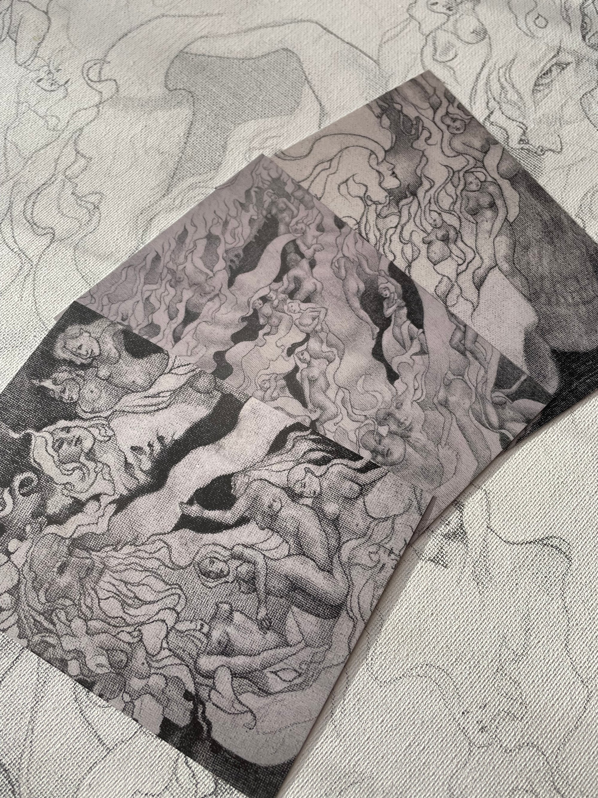 A trio of A6 (105 × 148 mm) luxury art postcards, each revealing a detail from Beyond the Veil.